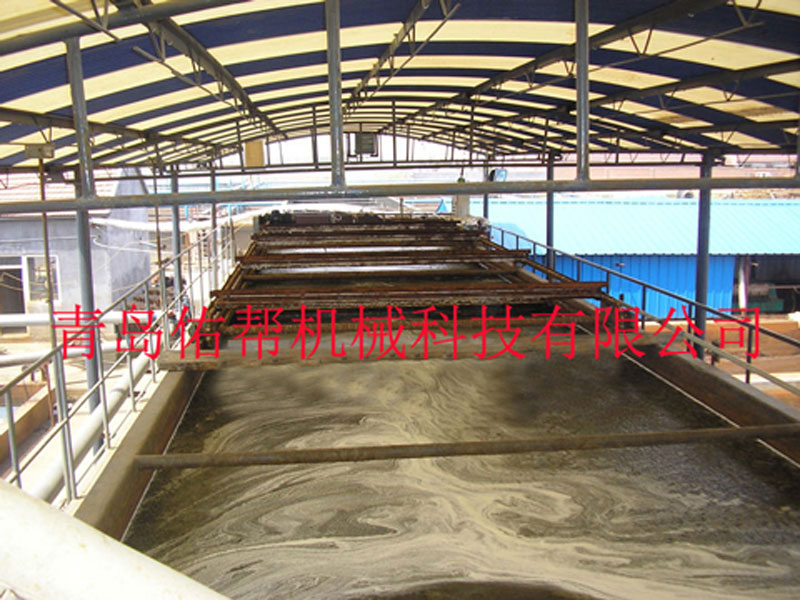 渦凹、溶氣組合式氣浮機為一體化撬裝設(shè)備,渦凹?xì)飧∠到y(tǒng)和溶氣氣浮系統(tǒng)共用一個箱體,共用一臺刮渣機,設(shè)備體積減小,運輸、安裝比較方便。進(jìn)水經(jīng)加藥混合后,在渦凹曝氣機的攪拌和曝氣的作用下,藥劑和污水更成分的混合反應(yīng)并與氣泡粘附,大部分懸浮物漂浮于池體表面,經(jīng)出水堰調(diào)節(jié)水位后,浮渣不需經(jīng)過刮渣機可自流進(jìn)排渣槽排出,浮渣含水量低,濃縮效果好。經(jīng)過渦凹曝氣機處理后的污水自流進(jìn)溶氣氣浮系統(tǒng),渦凹曝氣機所不能處理**的細(xì)小的絮體和污泥等懸浮物,經(jīng)微小的氣泡捕捉上浮形成密度比較小的浮渣,再有刮渣機推送到排渣槽排出。處理后的水經(jīng)過出水堰溢流出設(shè)備外。